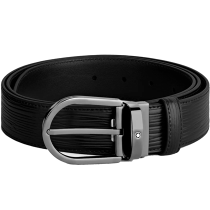 Черный кожаный ремень с подковообразной пряжкой 35мм от магазина премиальных ручек Premium Pens в Электростале.