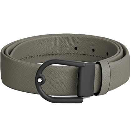 Кожаный ремень 35 мм из кожи серого цвета, пряжка в форме подковы от магазина премиальных ручек Premium Pens в Электростале.